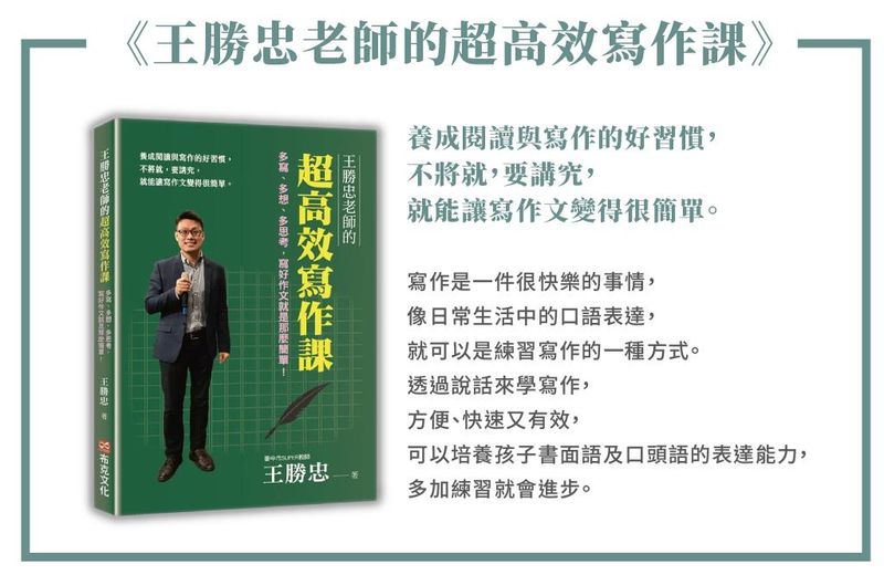 • 加上《王勝忠老師的超高效寫作課》(電子書),讓孩子寫作力更上一層樓!
