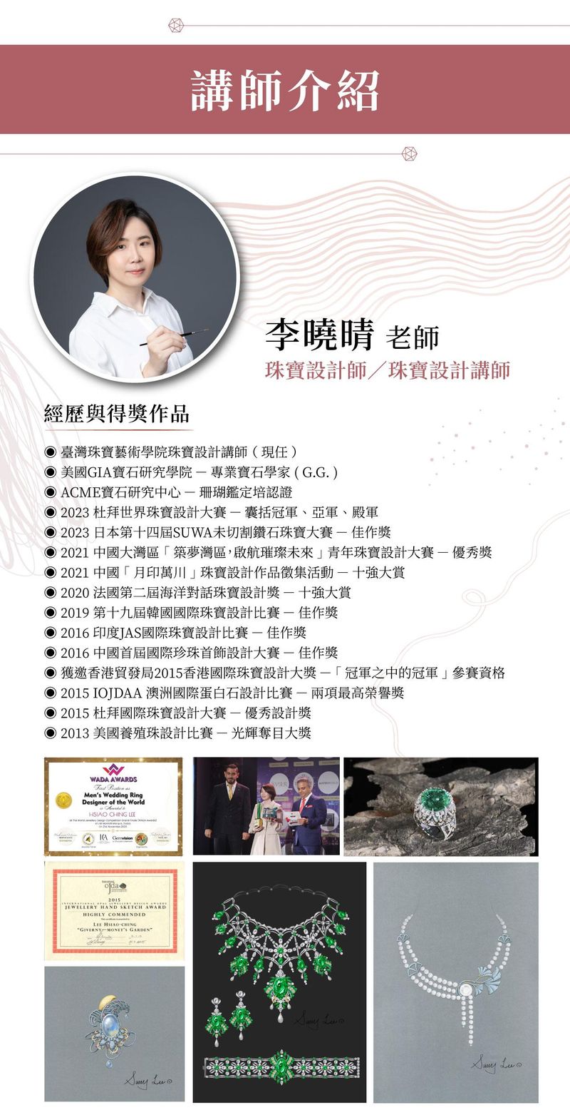 臺灣珠寶藝術學院珠寶設計講師(現任)