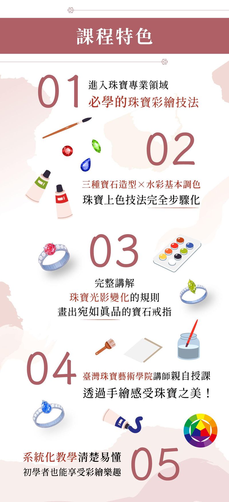 ※因珠寶彩繪作畫需求較細緻,建議至美術社選購,課程內有提供老師常用品牌提供參考。